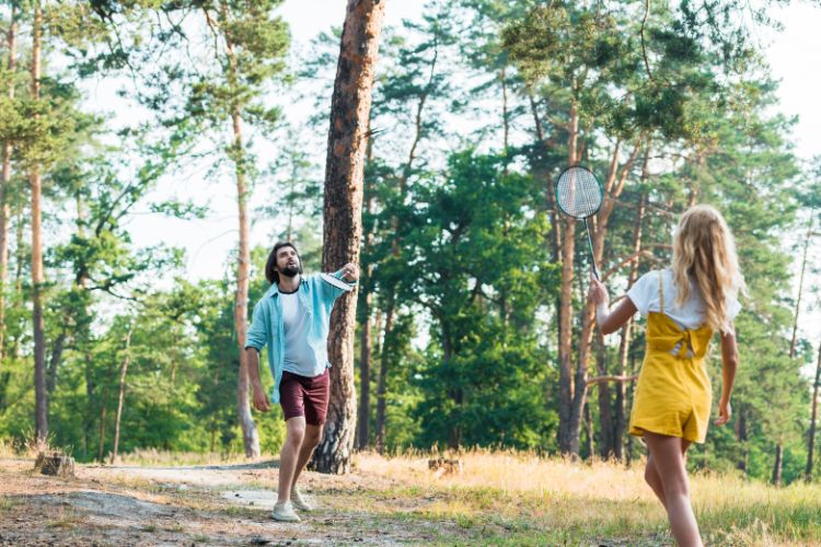 Wo kanns gespielt werden? Schlicht überall, ob daheim im Garten oder in den Ferien. Weil der Federball auch nicht unendlich weit fliegt, braucht man auch nicht so viel Platz wie zum Beispiel beim Beachball oder Frisbee. Federball kommt im Gegensatz zu Badminton, das primär in der Halle gespielt wird, zudem ohne Netz aus.