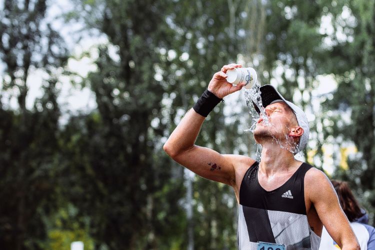 Bei langen Wettkampfbelastungen im Laufsport (z.B. Halbmarathon und Marathon) ist eine regelmässige Flüssigkeitszufuhr wichtig. Deshalb keine Verpflegungsstation auslassen und in regelmässigen Abständen kleine Mengen (Wasser oder Elektrolytgetränke) trinken.