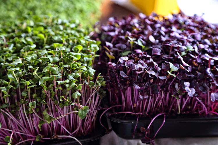 Seit einigen Jahren werden sogenannte Microgreens immer beliebter. Sie unterscheiden sich nur in wenigen Punkten von Sprossen. Microgreens sind junge, zarte Grüns, die aus den Samen von Gemüse, Kräutern oder anderen Pflanzen wachsen. Im Gegensatz zu den Sprossen werden Microgreens in Erde oder in einem anderen Substrat angebaut. Die Minipflanzen benötigen 7–21 Tage, bis sie geerntet werden können, somit etwas länger als Sprossen. Sie sind zudem intensiver in ihrem Aroma, das von süss bis würzig sein kann.