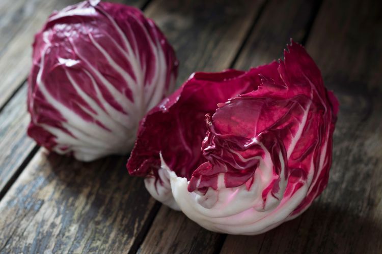 Les personnes qui ne raffolent pas de l’amertume peuvent éliminer le trognon, qui est le plus amer. Comme toutes les autres salades, la chicorée rouge, également appelée cicorino rosso, contient beaucoup d’eau, de vitamines et de sels minéraux, mais peu de calories.