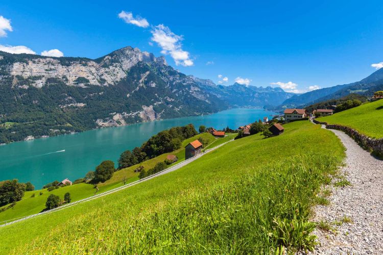 Après ce moment fort dans cette randonnée facile, le sentier continue à monter rapidement avant de redescendre, toujours aussi abrupt, en direction de Quinten. Par endroits, des câbles métalliques aident à la descente, utiles tout au plus en cas de pluie. C’est là que le lac de Walenstadt mérite son ancienne réputation de «lac à chagrin» surchargé de visiteurs. L’encombrement dominical se produit cependant sur le chemin de randonnée caillouteux qui descend vers Quinten.