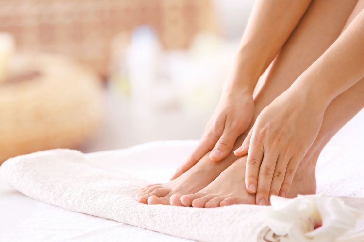 Pour que les pieds soient suffisamment hydratés et que la peau reste douce, appliquez une crème tous les jours. L’idéal est d’utiliser une formule hydratante spéciale pour les pieds, car notre peau renferme moins de glandes sébacées sur cette partie de notre corps. Elle est donc plus sèche et davantage sujette aux fendillements et gerçures au niveau du talon. La crème choisie doit contenir des corps gras, comme les huiles végétales, et des substances hydrophiles comme l’urée ou la glycérine. Il existe aussi des crèmes spécifiques à l’action déodorante ou qui réduisent la formation de la corne. Les sprays déodorants pour les pieds aident à lutter contre les odeurs désagréables et procurent une sensation de fraîcheur. Et pourquoi ne pas profiter de l’application de la crème pour s’octroyer un massage. Commencez par masser les orteils individuellement, puis malaxez l’ensemble du pied plus énergiquement pour détendre et assouplir les muscles. Vous pouvez également appliquer de la crème sur les pieds le soir et porter des chaussettes en coton pendant la nuit pour une pénétration optimale.