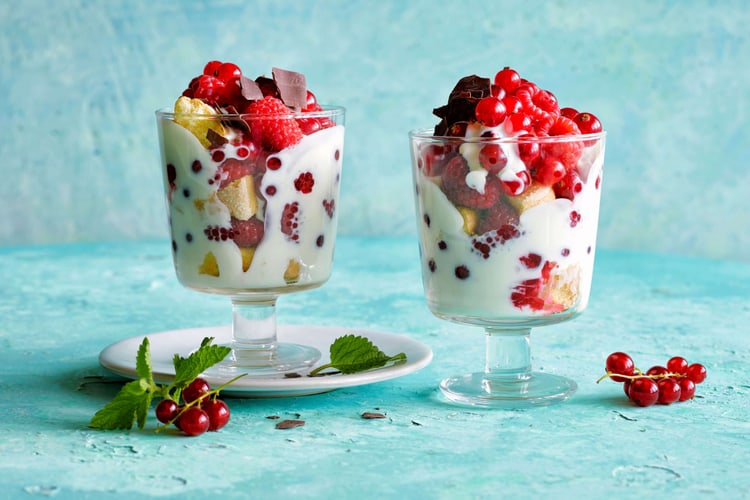 Couper en deux les biscuits à la cuillère et les répartir dans les verres. Déposer en alternance des couches de baies et de crème. Placer au moins 30 min au réfrigérateur.
