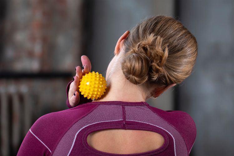 Se masser avec ses propres mains demande de l’entraînement. On se fatigue vite, surtout au début. Balle de tennis ou de Lacrosse, rouleau ou bâton de massage peuvent vous faciliter la tâche. Calez par exemple une balle de tennis entre votre dos et le mur, et faites-la rouler le long des muscles dorsaux.