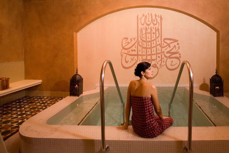 La chaleur et l’eau sont les éléments centraux du hammam. Une lumière douce, des ornements et des parfums créent une ambiance propice à la relaxation. La séance prend ensuite la forme d’un rituel: