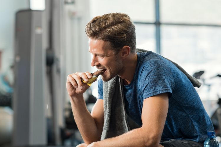 Un fabbisogno proteico normale è in genere coperto da tre pasti principali. Tuttavia, i bodybuilder più ambiziosi, che si orientano al limite superiore di 2 g di proteine per kg di peso corporeo, hanno spesso bisogno di spuntini tra i pasti. Prendiamo l'esempio di un uomo di 70 kg che intende assumere 140 g di proteine al giorno. Con tre pasti principali raggiunge circa 90 g. Il resto lo deve coprire con due spuntini proteici, uno al mattino e uno al pomeriggio.