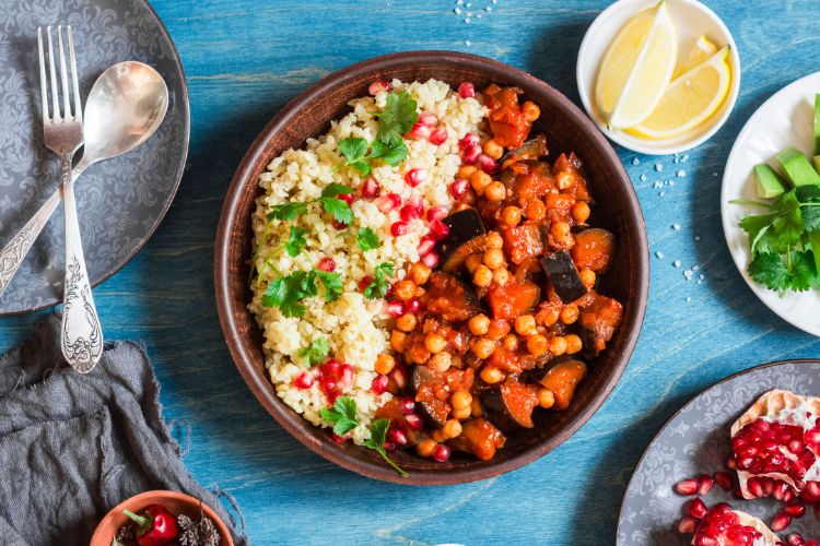 Cuscus, legumi come lenticchie o ceci, verdure, melagrana, frutta essiccata come datteri e albicocche, ma anche aromi come la menta piperita o il prezzemolo... ecco alcuni capisaldi della gastronomia orientale. Anche la shakshuka è un piatto caratteristico di questa categoria: preparato con pomodori e uova, è diffuso soprattutto in Nordafrica e Israele e consumato per colazione.
