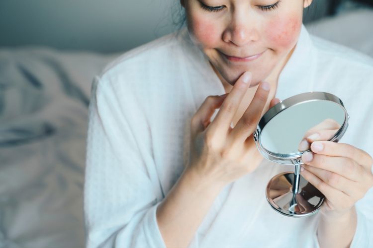 Tutto ciò che attiva o irrita i vasi sanguigni della pelle può favorire la rosacea, come ad esempio il caffè, l'alcol, i cibi piccanti, il calore, i raggi UV o il vento freddo. In caso di condizioni climatiche estreme, è quindi necessario proteggere la pelle.