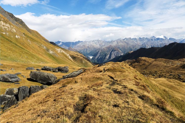 Sembrano un po' bizzarri, i tanti massi neri intorno al Passo di Gana Negra. Sono disposti come in uno sfondo e con il loro colore scuro conferiscono al paesaggio un particolare contrasto. Il nero deriva dalla grafite contenuta nei massi. Sono arrivati secoli fa con una frana dal Pizzo del Corvo, a tremila metri di altitudine, metri, che veglia sull'Alpe di Bovarina. L'alpe solitaria e lunga invita a staccare la spina e a godersela, dopo tutto la ripida salita dal Centro Pro-Natura sulla strada del Passo del Lucomagno al Passo di Gana Negra richiede una certa forza. Per farlo, si parte dalla Selvasecca, un bosco di larici e pini unico nel suo genere, e ci si lascia incantare dal vivace scorrere del Brenno del Lucomagno. Lo stesso si può fare il secondo giorno, nei boschi incantati e ripidi tra Cantonill e Campo. Bellissima, la più lontana Valle di Blenio è rimasta una gemma selvaggia.