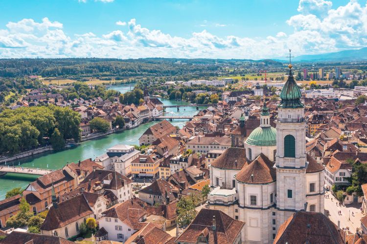 A poche centinaia di metri dalla stazione di Soletta, l'escursionista cittadino sta già passeggiando lungo il tranquillo scorrere dell'Aare, con vista su Soletta sulla sponda opposta. La prima destinazione è l'"Hafenbar", un popolare luogo di incontro estivo dei solettesi per aperitivi e chiacchiere in un'atmosfera rilassata. Una particolarità: ordinando una birra "Öufi" di Soletta sotto le grandi chiome degli alberi, è possibile immergersi nella storia della città. Undici, 11, "Öufi": qui questo numero è un culto. A Soletta si trovano infatti 11 chiese e cappelle, 11 torri e l'orologio che segna solo 11 ore. Sul suo quadrante, si cerca invano il numero 12.