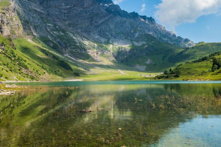 Il lago di Klöntal, nella regione di Glarona, attrae molti visitatori. Quello di Oberblegi invece, meno conosciuto, si raggiunge con una breve camminata dalla stazione a monte della funivia di Brunnenberg. Dopo la passeggiata, è d’obbligo rinfrescarsi nelle acque blu notte del bel lago montano adagiato alle pendici del Glärnisch fermarsi per un picnic in mezzo alla flora alpina.